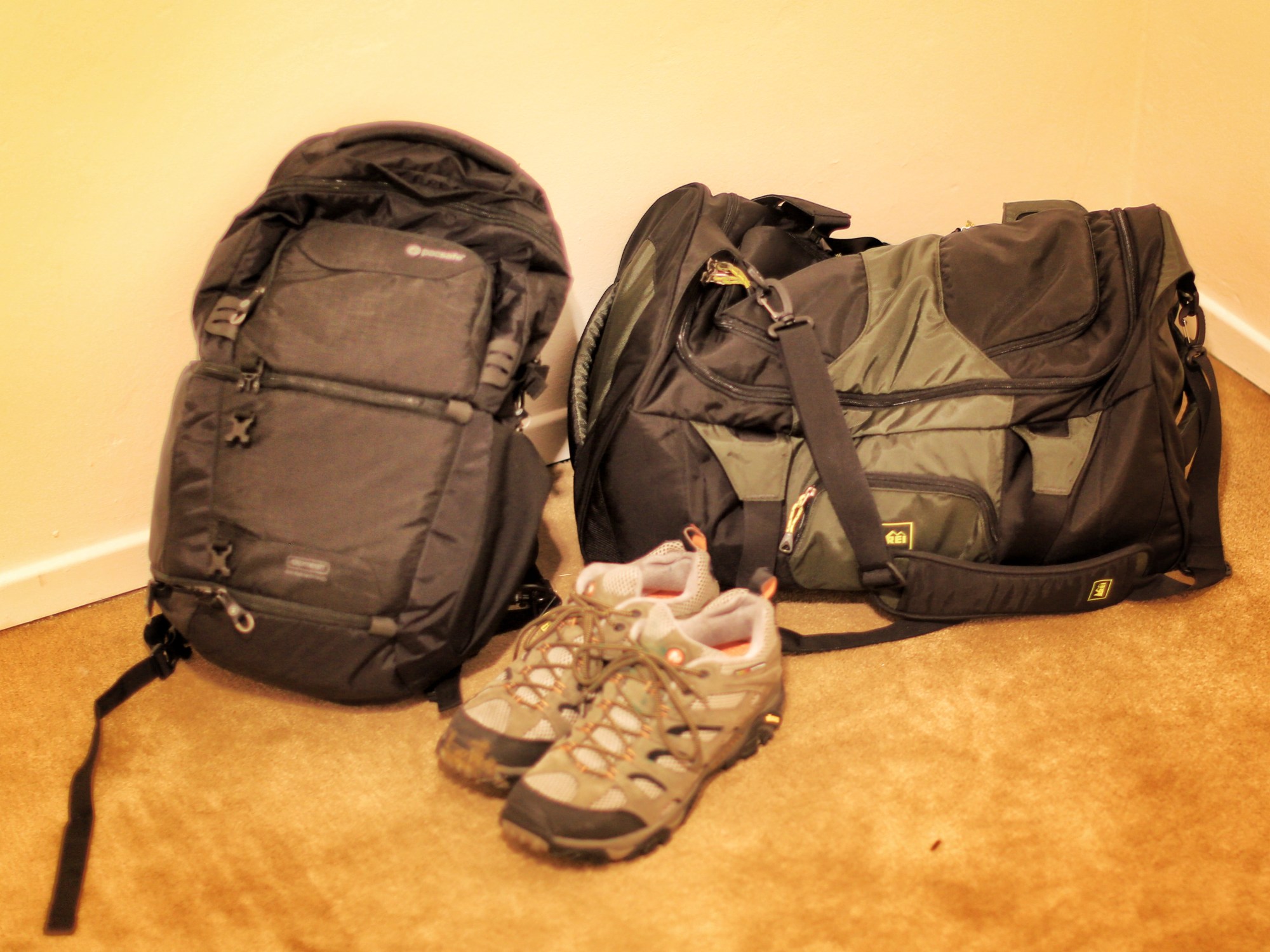 The picture below is a picture of everything that I will be bringing with me to live for the next year. You can’t see all of it (actually you can’t see any of it) and – comically – in and of itself, there’s nothing minimal about it even in regards to taking a trip where you are packing everything that you want to bring into 2 bags that need to weight less than 40 pounds combined.