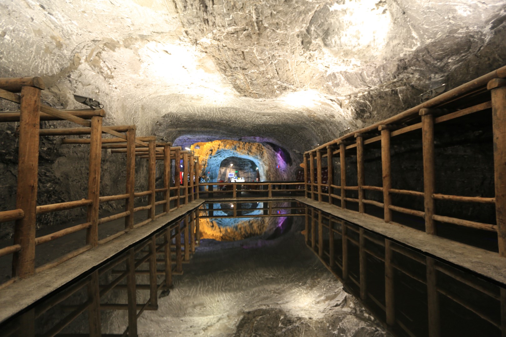There is also an underground salt pond.  This is a picture of a reflection.  Yes.  The salt water is 4 inches below the walkway.  Bad Ass.