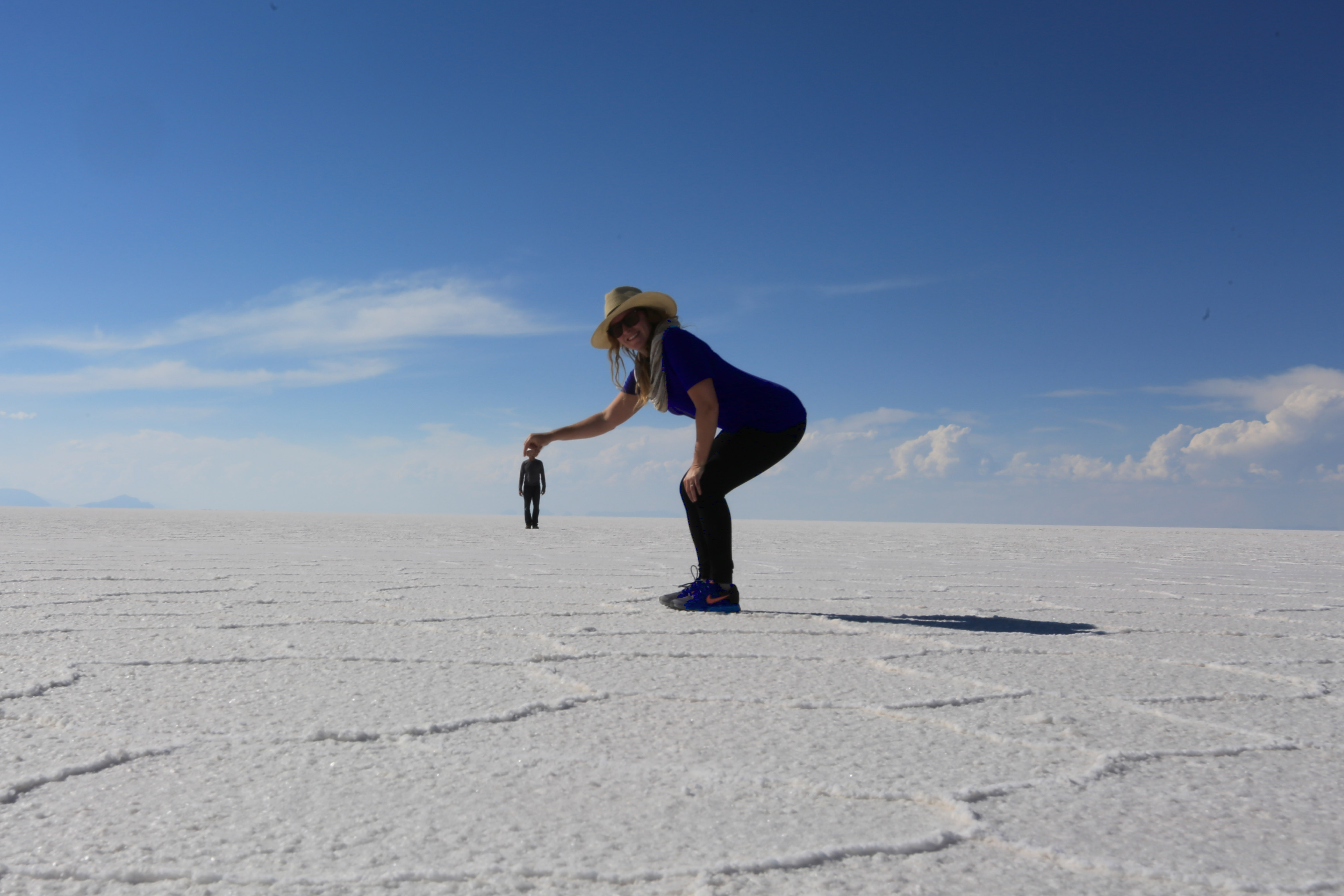 Seeing as how I have fallen wildly off publishing blogs and I have a half dozen, half finished blogs I have decided to publish something that has no depth to it. Literally! Mainly a photo blog but the back story is that high in mountains in the south of Bolivia there is a flat made of salt that takes a few hours to drive across. The white salt goes on for such distances that it allows for photoshop-less camera illusions. We took a 3 day tour in a Land Cruiser. We made a great group of new friends that I might go into more detail in a different blog post but again – this is more just to include these fun pictures. Our tour company out of the town of Uyuni was called Red Planet and the trip was a blast! This trip was about a month ago (April 2014!) we’ve done a ton before and in between. I’m hoping to publish a slew of blogs about all of the amazing stuff we’ve seen but The Curious Adventure is going great!