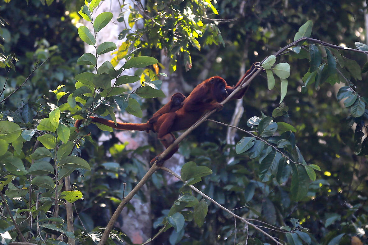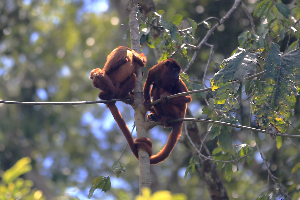 One of my favorite sightings was a group of red howler monkeys which included a mom with a baby.  They hung out (literally) for quite some time.   The mom and the dad were chilling out with the baby – not a care in the world for a moment.
