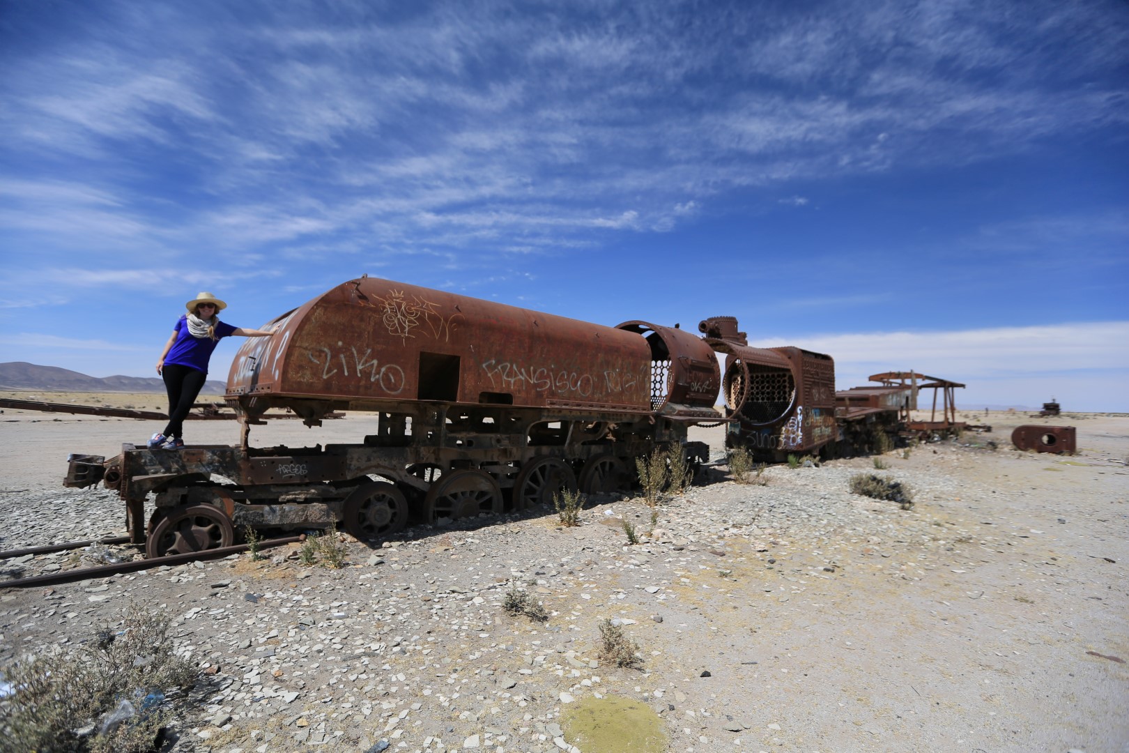 We stayed there for two nights – it was really cool but we were then off on the tour. It was myself, another guy named Adam and I think 10 young female traveler with 2 guides all packed into Toyota land cruisers set to drive through the desert and see strange surroundings, have a lot of laughs, take a lot of pictures and …. drove, and drove, and drove. No roads to speak of – for 3 days straight. It started out in a train graveyard. Rail transit of raw materials was a big deal in this area at the turn of last century. Not so much any more but the train graveyard is still here.