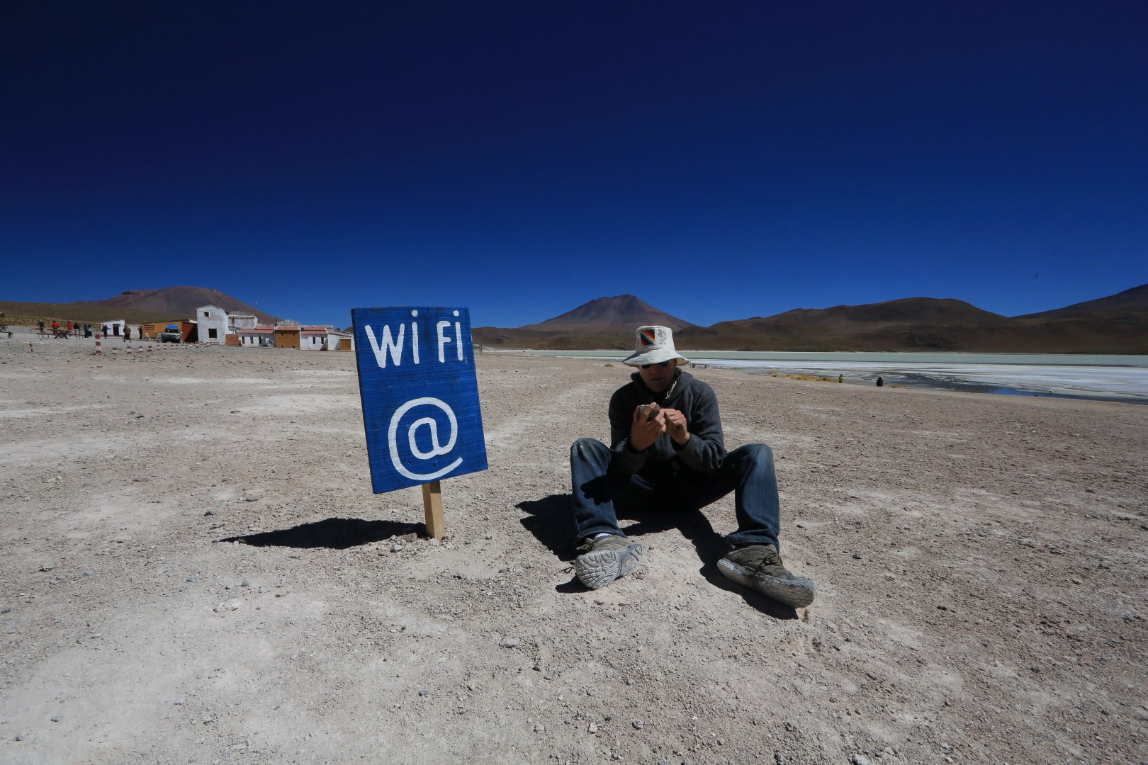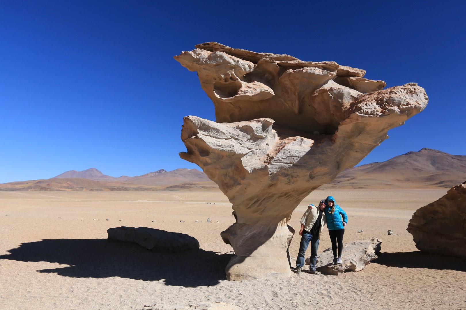 I feel like this is getting to be long – but it was a long trip. Maybe I will complete the words for the rest of this day and then add the pictures – because we drove across Bolivia for 12 hours that day – or close. We stopped at places – but we toured for 10 hours. We saw all of the following: lagoons in the mountains with flamingos; an active volcano; weird rock formations; lots of wild llama-related animals called vicunas (they were everywhere); a wifi sign in a crazy remote place; foxes running the desert; mountains with 7 colors of minerals; landscapes that looked like mars; absolutely insane guys riding touring bicycles through this wasteland; rock trees; giant rock lizards; chinchillas; geo-thermal geysers; more lakes made of poisonous materials, again with flamingos …. and … I’m missing stuff but maybe you get the point. Here are some photo highlights: