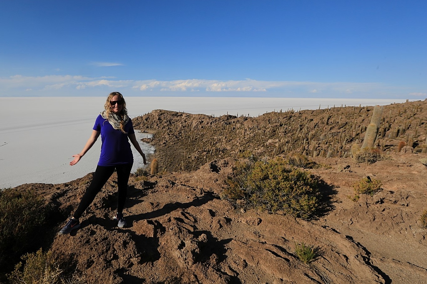 The next stop on the tour was a mind blowing illusion – but it was real. You see, the whole desert was once covered in water – and – there’s still an island in the middle of it. A literal island – in the middle of a hundred miles of salt. The island is populated with cactus and when you are walking on the island it feels as if the salt desert is an ocean around you. Check it out: