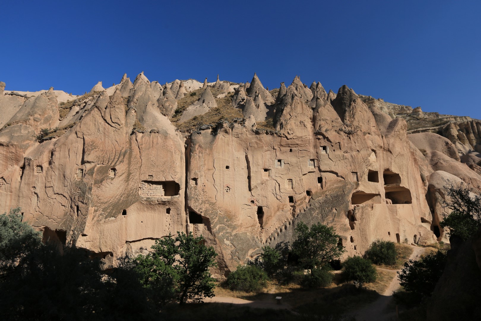 The magic isn’t just in the landscape here – it’s in the fact that people lived in these cliffs and caves for centuries. Everywhere you look there are caves and they are obviously man made. The history here is eye popping as well. In this big world there is too much history to know but this part is really news to me. Turkey was a hotbed of early Christianity. It is here in Cappadocia that the idea of a Christian monk lifestyle first came to order. These cave houses are mingeled with cave churches – Churches like the following represent probably 10% of the caves. Absolutely nuts!