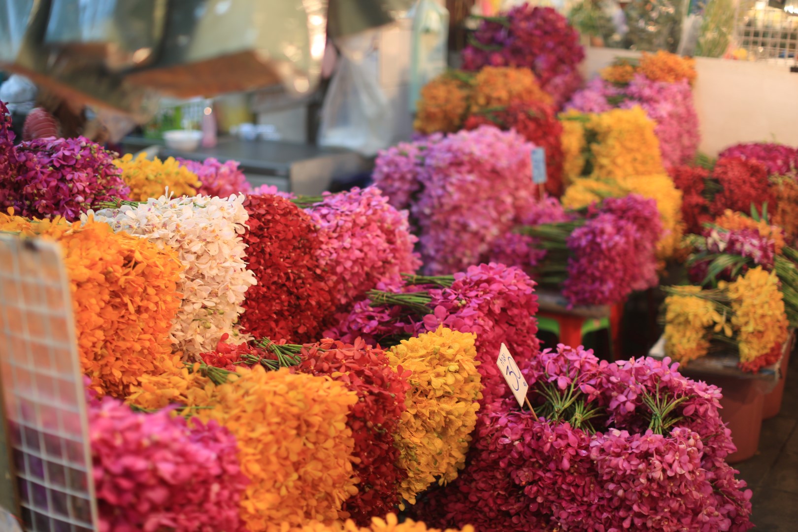 We felt much the same way on our visit to the night market in Thailand. There were so many blocks of flowers it’s impossible to make it show up in a single picture or even a series of pictures.