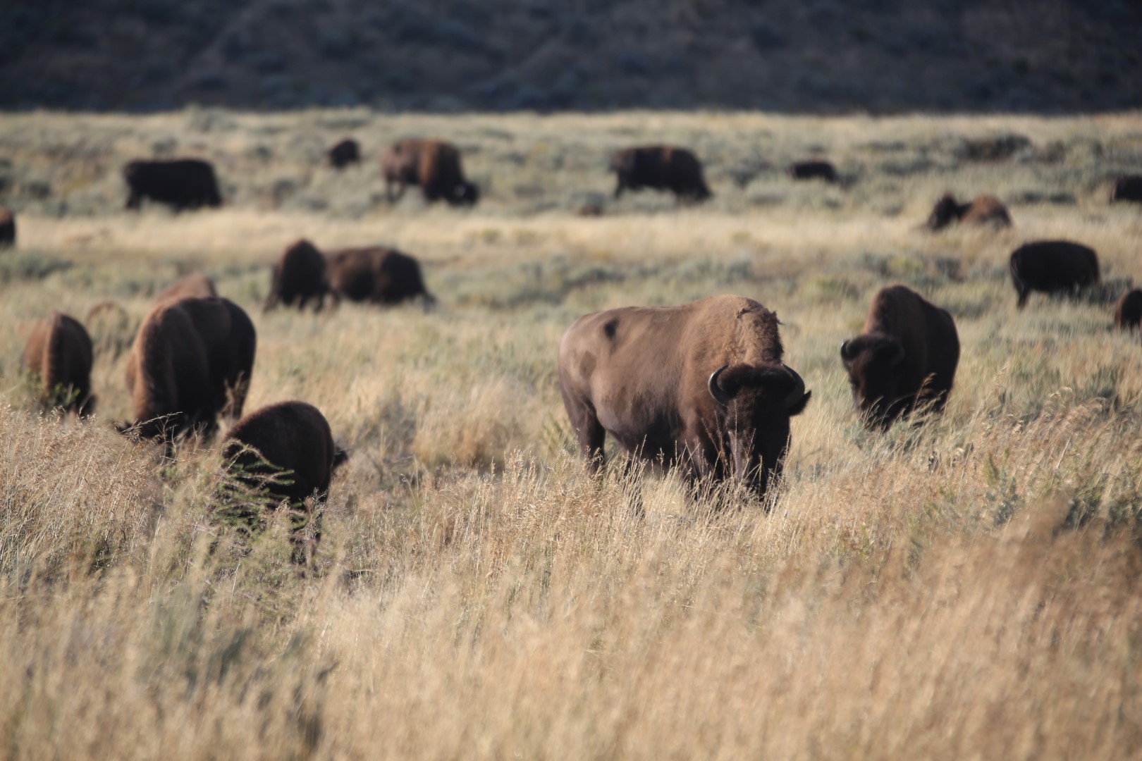 So yes, as I drove toward the campground on the night I arrived I am stopped, the third car in the line with a herd of buffalo crossing the road. I wasn’t here for more than 10 minutes and I saw this: